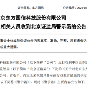 7月10日,东方国信午间公告称,因财务核算不规范等问题导致相关年报信披不准确,公司及董事长管连平等相关责任人收到北京证监局警示函(以下简称警示函)。