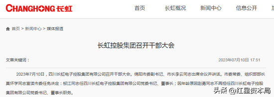 同日,长虹控股召开干部大会,柳江任长虹控股党委书记、董事长;因年龄原因赵勇不再担任长虹控股党委书记、董事长职务。