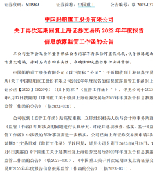 6月16日,上交所对中国重工下发监管工作函,对公司2022年年报披露的相关实现提出问询。