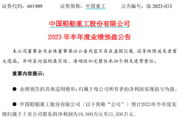 有意思的是,2022年报监管工作函尚未回复,中国重工又在今晚发布了2023年上半年业绩预告。