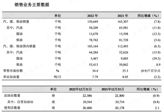 2022年中国石化成品油销售2.07亿吨,中国石油成品油销售1.5亿吨。