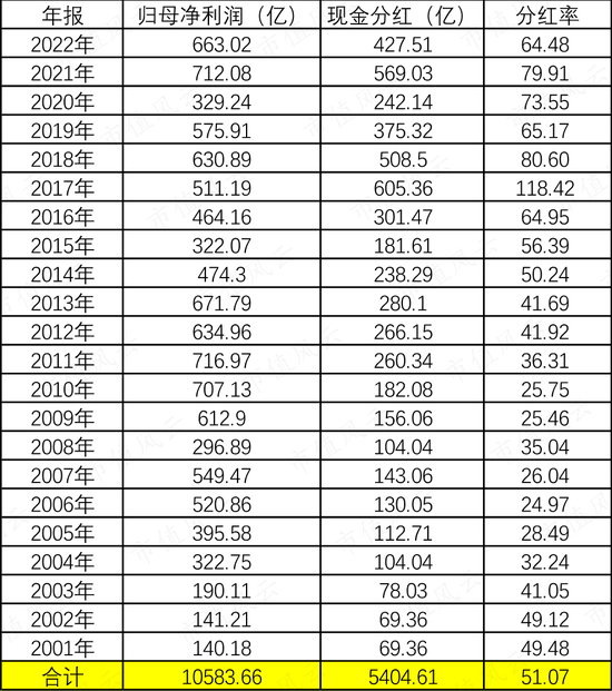 自2001年上市以来,中国石化累计利润上万亿,分红5406亿,只募资了755亿,2022年分红率71%,妥妥现金牛!