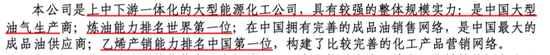 (3)化工:石油生产成化工品,比如乙烯、合成树脂、合成纤维等,这个就和荣盛石化、恒力石化的业务是类似的;