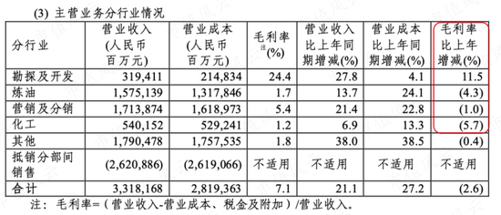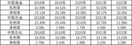2022年中国海油和中国石油的毛利率都因为油气价格上涨而提高,但中国石化的毛利率却下降了:2021年为19.13%,2022年为15.03%,相比减少4%。