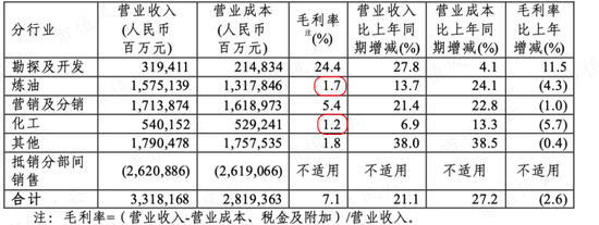 炼化实力还是公司强,但2022年由于高油价也导致炼油和化工业务的毛利率相对较低。