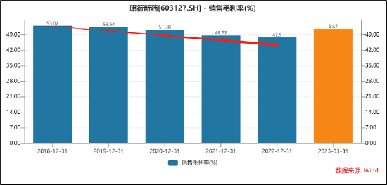实验猴价格持续上涨,使得公司盈利也承压。Wind数据显示,公司近五年,毛利率持续下滑,由2018年的53%跌至2022年的48%。事实上,昭衍新药为应对这种波动,采取了保有一定生物性资产储备量策略。截止2022年年末,公司消耗性生物资产与生产性生物资产之和超18亿元。