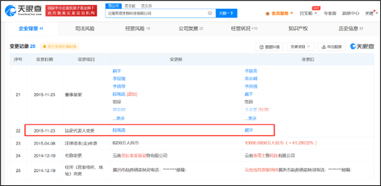 玮美生物股东是云南官房集团和协尔云康,英茂生物股东云南英茂集团。根据天眼查发现,英茂生物法人代表、董事长、总经理扈宇,同时兼任玮美生物董事兼总经理。
