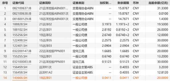 资料显示,早在2018年8月2日,远洋集团在境内公开发行了规模合计20亿元的“18远洋01”债券,期限5年,当前余额20亿元,当期票面利率4.0%。这笔债券也将在今年8月2日支付本金余额及应付利息。