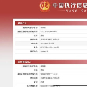 近日,中国执行信息公开网信息显示,I Do钻戒品牌创始人李厚霖被天津市滨海新区人民法院列为失信被执行人。
