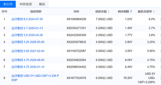 此外,母公司远洋集团还有8只存续美元债,合计约39.2亿美元,按7月18日汇率换算,约为人民币281.14亿元。