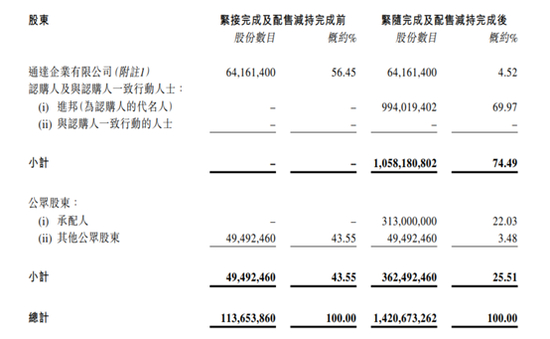 最终的结果是,顺安机遇1号基金配售减持了3.13亿股新股,持股比例为69.97%,承配人及公众股东的持股合计达到25.51%。
