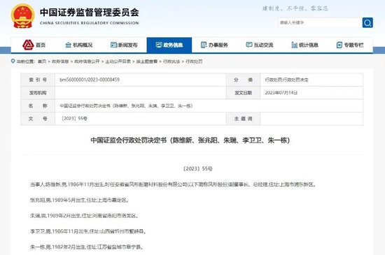 这次行政处罚涉及的5人均为80后,其中年龄最大的为朱一栋,1982年出生;最小的为张兆阳、朱瑞,均为1989年出生,陈维新、李卫卫则为1986年出生。