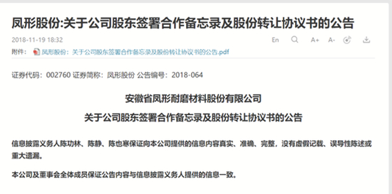 彼时,凤形股份的实控人是陈氏家族,即陈晓、陈功林、陈静三兄妹,陈功林、陈静、陈也寒与泰豪集团于2018年11月19日签署了《股份转让协议书》,约定3人以协议转让方式向泰豪集团转让其持有凤形股份约544.8万股人民币普通股股份,约占凤形股份总股本的6.19%。