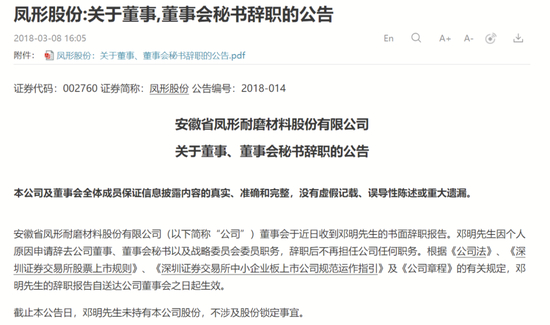 不过,2018年3月8日,凤形股份公告董事会秘书邓某便辞职。同年7月23日,时任副董事长、总经理的陈维新暂停履职,暂由公司董事长陈晓代理行使总经理职责,负责公司的经营管理。