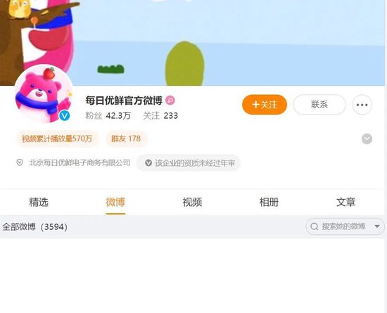 与此同时,每日优鲜的官方微博仍是一片沉寂。记者留意到,每日优鲜官方微博页面显示:“该企业的资质未经过年审”,主页显示半年内未曾发布过动态,苹果应用商城App Store中也无法查询到每日优鲜的下载页面。