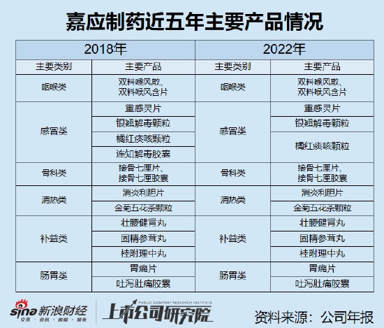 由于投入不足,嘉应制药近五年并未取得具有经济价值的研发成果,资本化研发费用长期为0。从产品角度看,公司产品矩阵长期原地踏步,2022年主要产品包括咽喉类的双料喉风散、双料喉风含片;骨科类的接骨七厘片、接骨七厘胶囊等,与2018年相比没有显著变化。同时,拥有的药品品种由2018年的5个剂型共65种药品品种变为2022年的5个剂型58种药品品种。