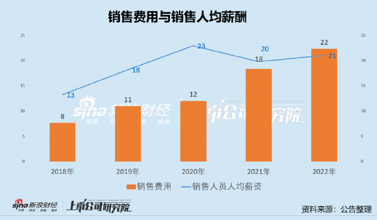 从销售费用结构看,公司的销售费用占比最大为薪酬结构,2022年销售费用职工薪酬为7.06亿元,同比增长27%。