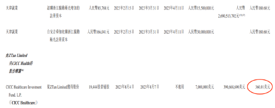 值得关注的是,2023年8月4日,也就是脑动极光递表前四天,CICC Healthcare与公司实控人谭先生及ZTan Limited(一家由谭先生全资拥有的英属维尔京群岛公司)签订股份购买协议,以现金代价700万美元收购了公司19444股的股权,每股持股成本达到了惊人的360.01美元/股,相比于6个月前180.68人民币/股的入股价格翻了近14倍。