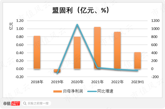 然而,即使忽略到2019年的亏损,盟固利的利润却基本原地不动,2022年的9232.86万元,对比2018年的8241.42万元,增长微乎其微,对比2021年则是增收不增利。