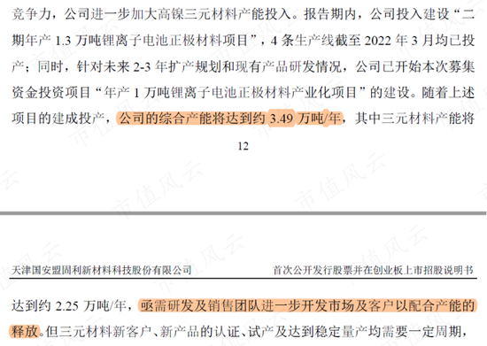 有意思的是,即使其产能利用率不足50%,盟固利此次上市仍要募资7亿元,继续扩建1万吨三元正极材料产能。上述产线产能完全释放后,年产能将达到3.49万吨/年。