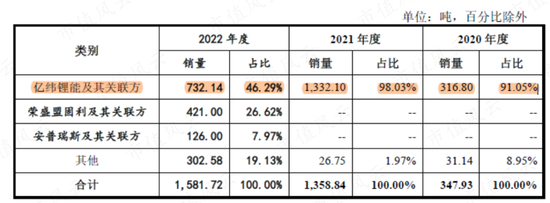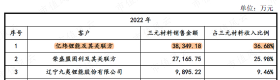 另外的亿纬锂能,是盟固利三元材料最大的客户,2022年向其销售了3.83亿元,共计1375.53吨。
