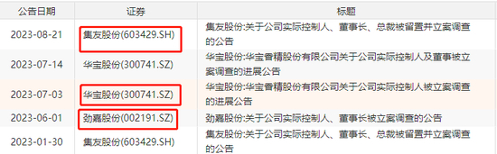 今年1月29日集友股份曾公告,于2023年1月20日收到重庆市巴南区监察委员会签发的关于对公司实际控制人、董事长、总裁徐善水个人因涉嫌行贿而被留置并立案调查的通知书。彼时,同样是女董事曹萼紧急补位代为履职。不过幸运的是,徐善水在4月17日很快被解除留置措施。此次徐善水“二进宫”能否再次顺利过关,值得关注。