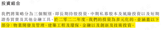 原来,公司近年来多元化投资,除了投资股票外,还涉足物业开发及管理、建筑工程及环保、金融以及创新及技术投资。