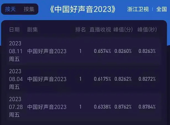 停播之前,《中国好声音2023》已播出四期,不仅赞助如常,而且在李玟录音事件曝光后的8月18日,播出的第四期节目拿下0.69%的新高收视率,连续四周为收视冠军。
