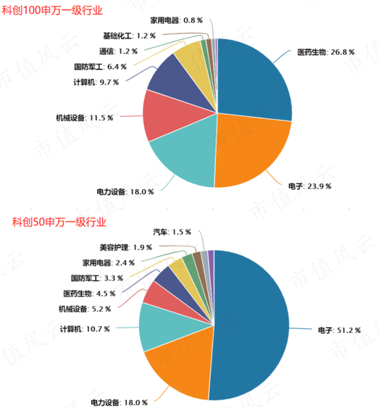 虽然两者聚焦的都是“硬科技”赛道,但在具体行业分布上,区别还是很明显。
