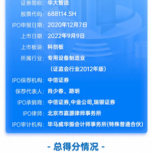 华大智造IPO项目总得分为51.5分,分类E级。华大智造分类评级之所以低,是因为公司信披质量较差,信披违规被上交所采取监管警示,上市周期较长效率较低,发行费用率较高,发行市盈率较高,上市后第一个会计年度营业利润大幅下滑。