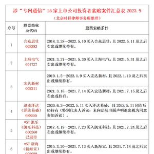 附图片版:15家涉“专网通信”虚假贸易业务上市公司索赔条件汇总表