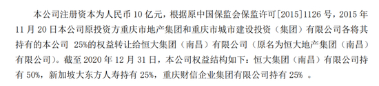 恒大人寿的前身是中新大东方,这是一家总部设在重庆,由重庆国资企业与新加坡大东方人寿保险有限公司一起合资设立的寿险公司,手里握有国内寿险牌照。