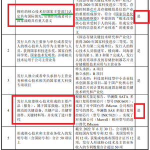问询函回复比招股书减少的第一项内容是“《固态存储关键技术研究和产业化》获得2020年国家科技进步二等奖,存储控制器芯片及存储模组是信息产业的重要组成部分,符合《国家信息化发展战略纲要》中提到的'根本改变核心技术受制于人的局面,形成安全可控的信息技术产业体系'的重要意义”(内容一)。对比监管条文可知,华澜微在招股书中忽略了“经国家主管部门认定”这一硬性条件,也没有说明获奖技术如何根本改变受制于人的局面,显然不符合这一条科创属性评价标准,而保荐人华泰联合并没有发现。