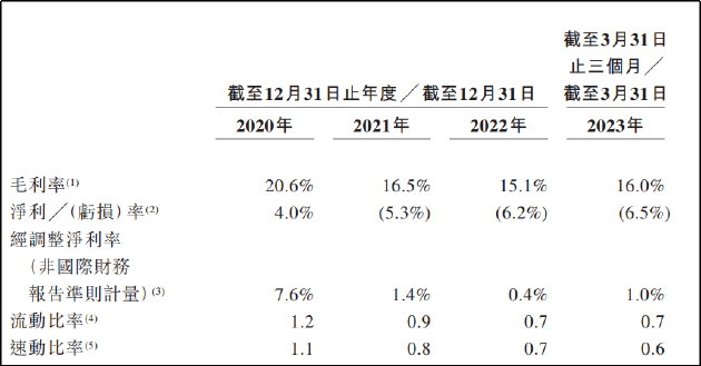 从毛利率看,大规模扩张也拖累了公司的毛利率表现,并使得公司偿债能力持续减弱。2020年至2023年3月底,树兰医疗毛利率分别为20.6%、16.5%、15.1%和16%,流动比率和速动比率均不足1且呈持续下滑趋势。