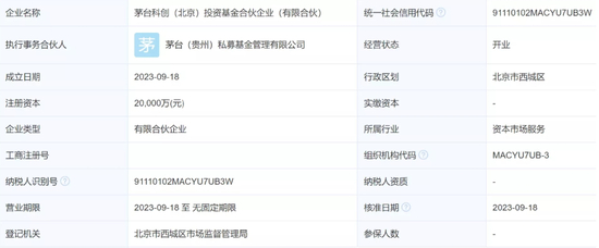 爱企查显示,9月18日,茅台科创(北京)投资基金合伙企业(有限合伙)(简称“茅台科创”)成立,注册资本2亿元,经营范围含创业投资,以私募基金从事股权投资、投资管理、资产管理等活动。茅台科创由于刚成立,目前尚未完成在中国证券投资基金业协会的备案手续。