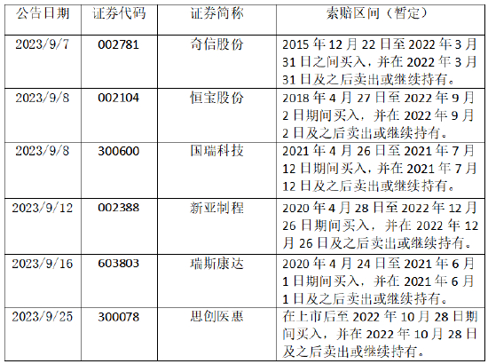 九月证券维权月度总结:6家公司被立案调查 多起投资者索赔案获重要进展