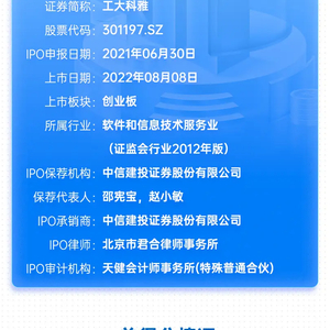 IPO项目总得分73分,分类C级。影响工大科雅评分的负面因素主要是:公司信披质量有待提升,上市周期明显高于行业平均水平,发行费用及发行费率较高,上市三个月业绩表现较差,从而导致了IPO得分情况受影响。