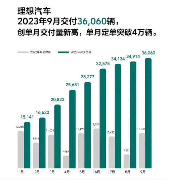 为了应对问界M7,理想提前停产了理想ONE,为此不惜向供应商支付10亿元赔偿。并且理想还打破产品发布节奏,提前发布了理想L8、L7,相比L9降了10万来抢份额。应对效果相当显著,理想从去年8月被‘打崩’时的4571台交付量。到今年9月,理想达到3.6万台的交付量,高于蔚来、小鹏交付量之和。李想也收获了节奏大师的业内称号,只是让2022年入手ONE的车主直接哭晕。
