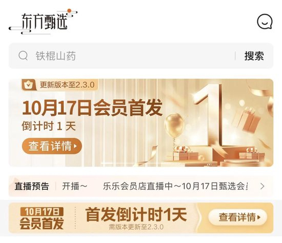 “贵”,没等北京商报记者提问,资深网购用户Cherry(化名)先对东方甄选会员制度表了态,“淘宝88VIP才88元,东方甄选会员不划算”。根据东方甄选App发布的预报海报,更新版本至2.3.0,10月17日会员首发。