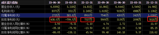 10月22日晚,圣龙股份发布2023年三季度业绩快报,显示前三季营业收入10.51亿元,同比下滑3.16%,而净利润下滑高达53.21%,扣非净利润更是直接报亏近500万元。去年年报和今年半年报,圣龙股份的扣非净利润是7000多万和400多万元。