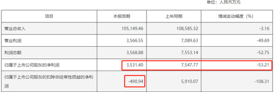 圣龙股份10月22日公告,公司前三季度实现营业总收入10.51亿元,同比下滑3.16%;归母净利润3531.4万元,同比大幅下滑53.21%;扣非净利润则直接报亏,为-490万元。