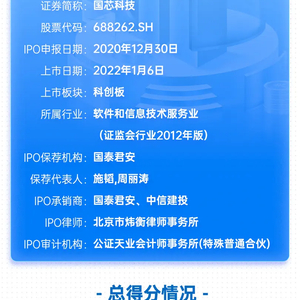 国泰君安保荐国芯科技IPO项目质量评级D级 发行市盈率高达418.95倍超募近17亿元 上市首年业绩“大变脸”