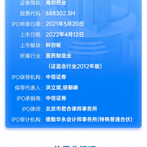 2022年度已上市A股企业从申报到上市的平均天数为403.6天,海创药业的上市周期是328天,低于整体均值。