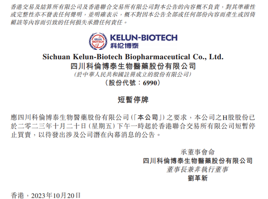 科伦博泰生物此前紧急停牌