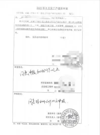 凤凰网《风暴眼》获得的报审资料显示,建设公司在2022年1月停工后,配合上报产值,其中2、3月份虚报完成金额2亿多元,4、5月分别虚报8500多万元,6月份虚报大约6千万元。建设公司4个项目实际建筑施工产值加起来大约3.6亿,却另虚报了3亿左右。每一份报审表下,均有正威泰强(平阳)电子信息有限公司(下称“正威泰强公司”)作为建设单位签章。