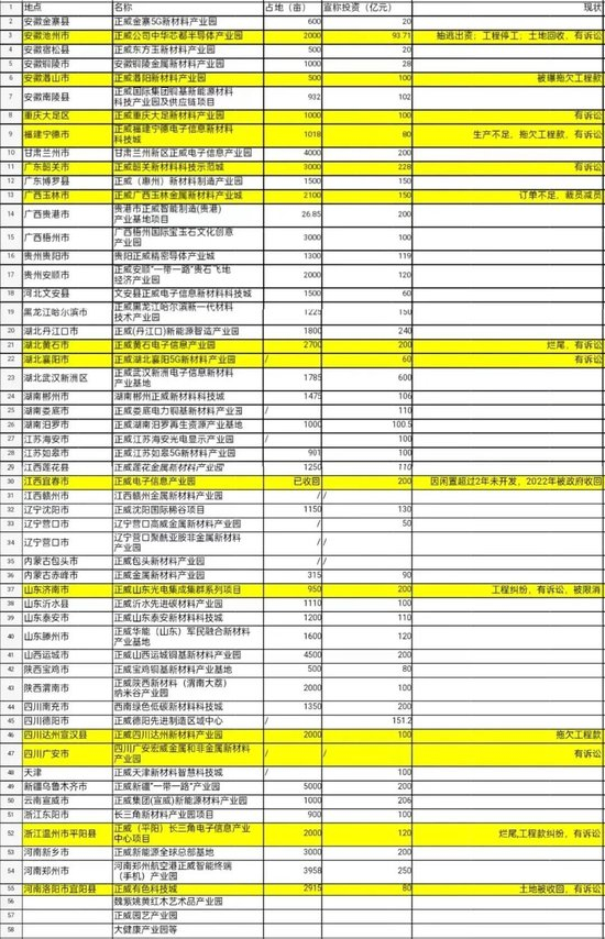 不只平阳,根据已经公开可查询的信息,凤凰网《风暴眼》发现,正威集团还先后在全国至少五十六个地方建设有产业园。