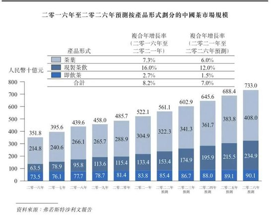 弗若斯特沙利文报告显示,2017年至2022年,中国白茶市场规模显著增长,从37亿元增至140亿元,复合年增长率30.6%,预计2027年达309亿元,2022年至2027年的复合年增长率为17.1%。