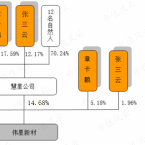 伟星新材控股股东为伟星集团,章卡鹏和张三云分别持有伟星集团15.97%、10.88%的股权,同时,两人分别持有慧星公司17.59%、12.17%的股权,并分别直接持有公司5.18%和1.96%的股份,最终两人合计直接或间接持有公司21.68%的股份,为公司的实控人。
