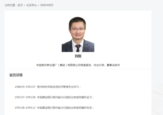 茅台集团官网披露的履历信息显示,刘刚曾在建设银行系统任职多年。