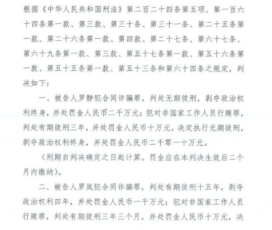 同时,罗静之妹罗岚犯合同诈骗罪、对非国家工作人员行贿罪,获刑十七年半,并处罚金1010万元。另有10名涉案的承兴系员工,均犯合同诈骗罪,获三年四个月至八年不等有期徒刑。